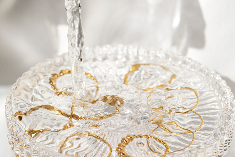 - Vergoldeter Schmuck sollte vor übermäßigem Kontakt mit Wasser und Feuchtigkeit geschützt werden. Entferne ihn daher vor dem Duschen, Schwimmen oder der Verwendung von Reinigungsmitteln. Um die Vergoldung zu erhalten, reibe den Schmuck sanft mit einem weichen Tuch ab und vermeide den Einsatz von Chemikalien oder aggressiven Reinigungsmitteln.*