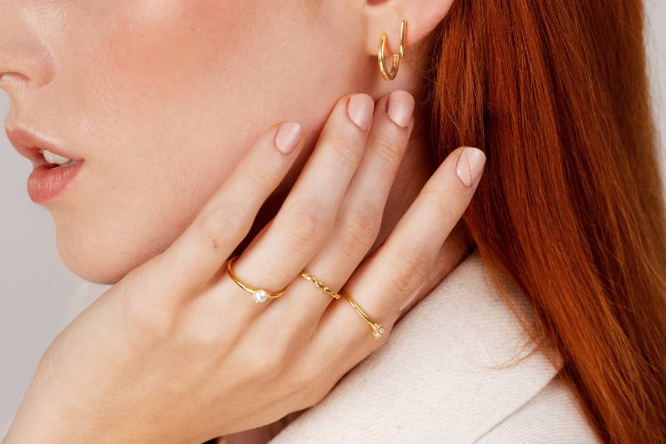 *Allgemein empfiehlt es sich Schmuck beim Sport, Schlafen oder anderen Aktivitäten, bei denen er versehentlich beschädigt werden könnte, auszuziehen. Bewahre deinen Schmuck währenddessen am besten in einem Schmuckkästchen oder einem weichen Beutel auf, um Kratzer und Staubansammlungen zu vermeiden. Wichtig für die Langlebigkeit deiner Pieces ist es außerdem, direkten Kontakt zu Bodylotion, Haarspray oder Parfum zu vermeiden.